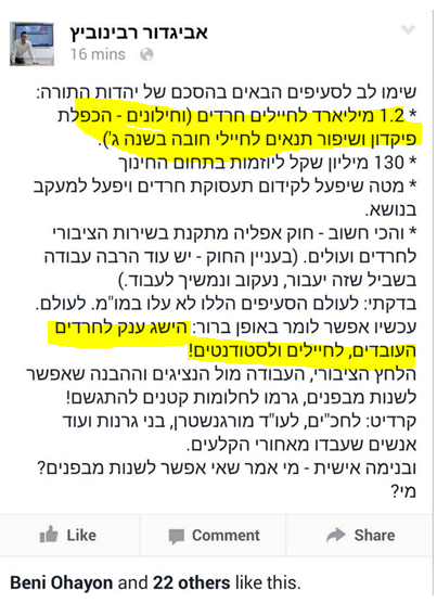 בתוך ההסכם הקואליציוני של יהדות התורה והליכוד מופיעים סעיפים חשובים מאד לציבור החרדי העובד