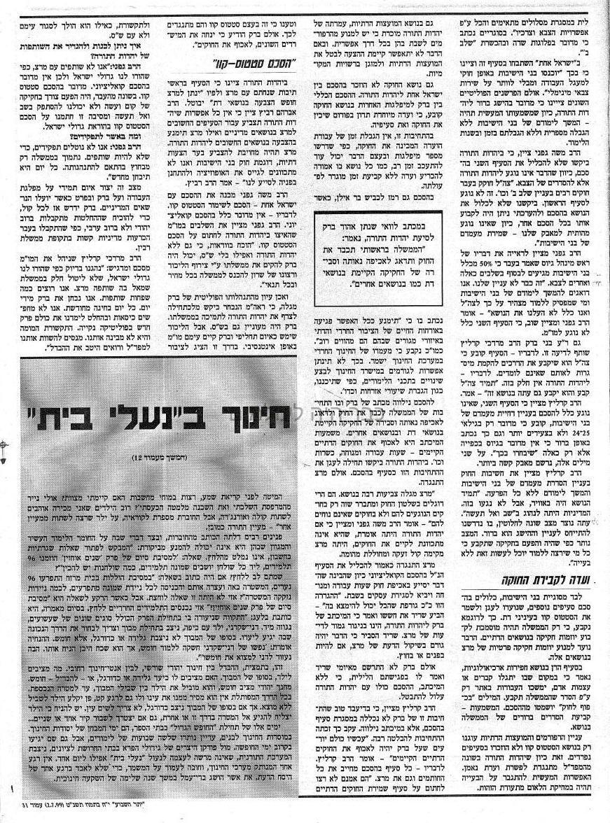 שטיינמן מנעו הכנסת הכתבה ובה התנגדותו לסעיף מס 4 בועדת טל: