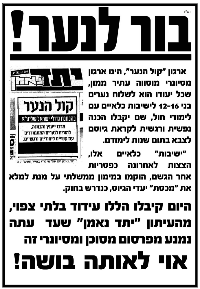 קול הנער מפנה נערים לישיבות תיכוניות וכדומה