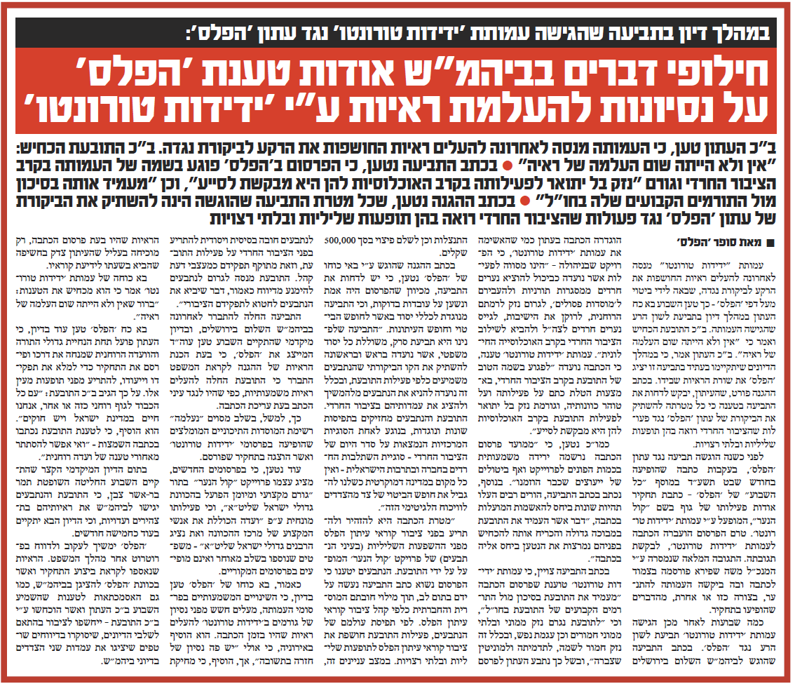 אך זאת התורה לא תהא מוחלפת ו'הפלס' ימשיך לפעול כנגד מובילי הריפורמות המסוכנות