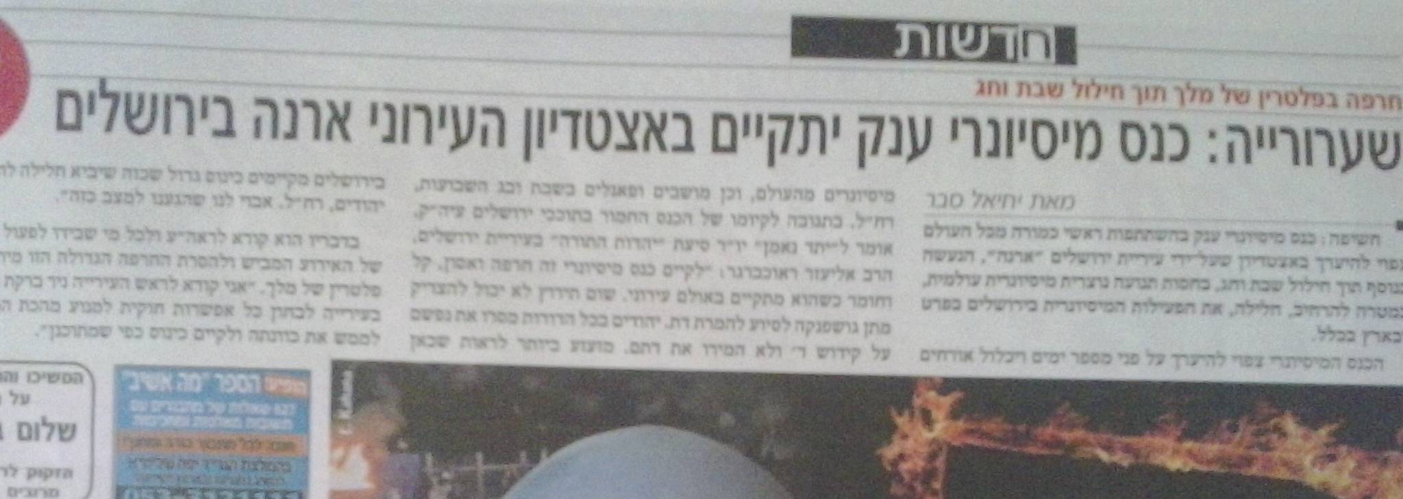 כנס מסיונרי עומד להתקיים ב''ארנה'' שועל 07.05.15 01:19 כותרת