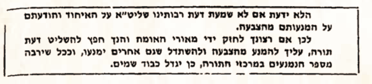 השורות דלהלן מתייחסות לסחף גלי ההערצה של המוני העם לצבא הציוני, כאילו ההגנה והישועה באה מכוחם ועוצם ידם...וזה לשונו: