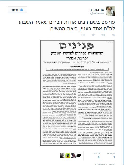 "בעקבות פניות רבות על כל מיני פרסומים שונים ומשונים, כביכול רבינו שליט"א (מרן הגר"ח, י. כ.) מתריע מפני מלחמה, או מזהיר את כולם לתקופה קשה שתבוא אחרי חג השבועות, ושמועות שונות, אנו מקדישים את המאמר הבא לעשות סדר וביאור בדברי מרן שר התורה שליט"א" נכתב בעלון.