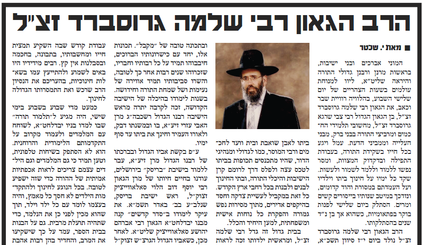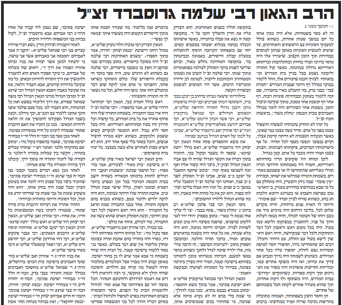 הפלס - הבטאון של עולם התורה תהא נשמתו צרורה בצרור החיים
