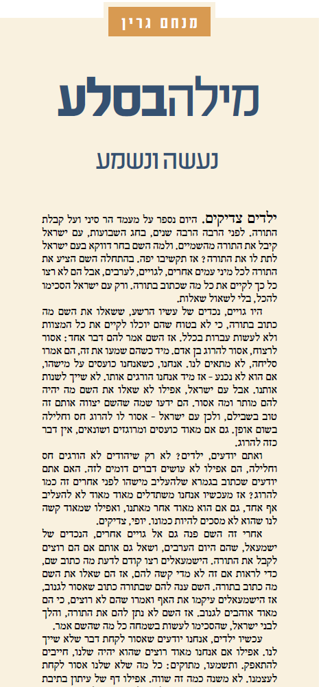 מנחם גרין / מילה בסלע: ''נעשה ונשמע''
