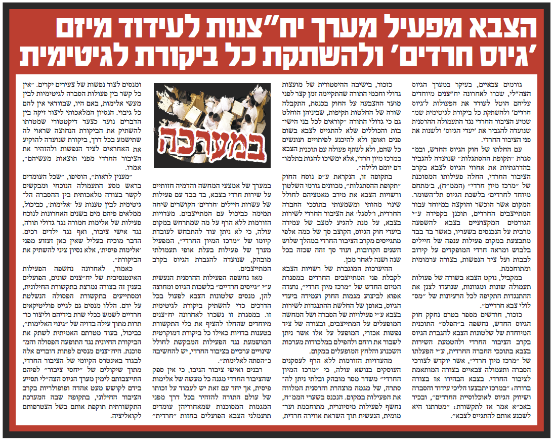 מערכת יחצ''נות מטעם הצבא ומשת''פיו לקידום מיזם הגיוס, ולדיכוי כל ביקורת לגיטימית