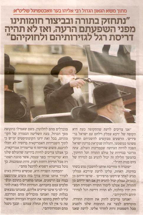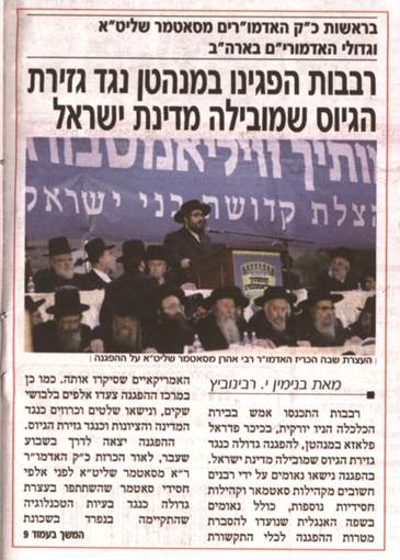 בנוסף נערכה בארה"ב עצרת ענק כנגד הגזירה הנוראה בעצרת נטלו חלק גם כמה מגדולי ראשי הישיבות בארה"ב ובראשם הגאון רבי אליהו דב וואכטפויגל שליט"א.
