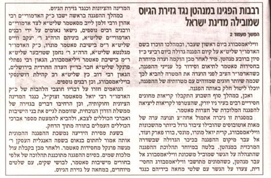 לעומת זאת בעיתון "יתד נאמן" ירדו לדיוטה תחתונה באופן סיקור העצרת, הם כתבו על כך כתבה קטנה ושולית, תוך ציון כי העצרת נערכה ע"י "חסידי סאטמר המתנגדים למדינה" תוך התעלמות מופגנת מהשתתפות חברי מועצג"ת: