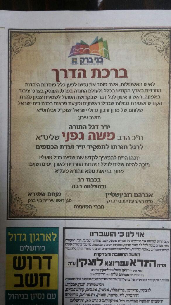 המודעה שכלל לא בלטה למרבית קוראי העיתונים גרמה לפתיחת "תיבת פנדורה" שמאיימת כעת להצית את אש המחלוקת בעיר התורה והחסידות.
