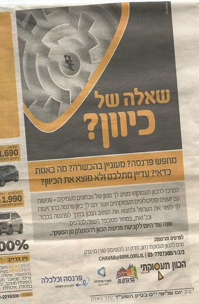 עסקני 'הוועדה להצלת עולם התורה' חושפים: "'מרכזי ההכוון התעסוקתי' של משרד הכלכלה, ממשיכים ב'ריקון הבריכה' של הישיבות והכוללים באמצעות פרסום 'מודעות תמימות' בעיתון יתד נאמן"" • "יש כאן בשורה טובה: לציבור החרדי נכנסה מודעות לסכנת אותם 'מרכזי הכוון' - ולכן הם מנסים להסתיר טביעות אצבעותיהם, במקום הכוון הם כותבים מתארגנת קבוצה"נחמן גור כ"ד סיון התשע"ה / 11.06.2015 19:19