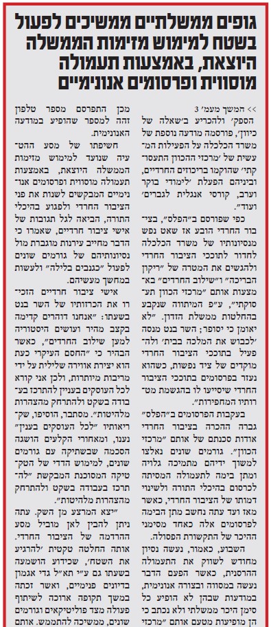 לדבריהם, "לאחרונה החלו במרכזי ההכוון לפרסם לציבור החרדי מודעות 'תמימות' כביכול, בהם לא מוזכר ולא במילה אחת 'מרכזי הכוון' 'משרד הכלכלה' או כל דבר אחר, כפי שהיו מתפרסמות המודעות עד היום, אלא מודעות תמימות לחלוטין על התארגנות קבוצה ללימודים".