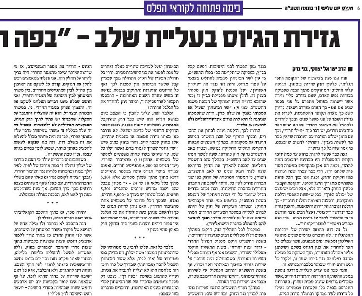 מאמר נפלא היום בהפלס: גזירת הגיוס בעליית שלב - ''בפה רך'' וב''הרדמה מלאה''