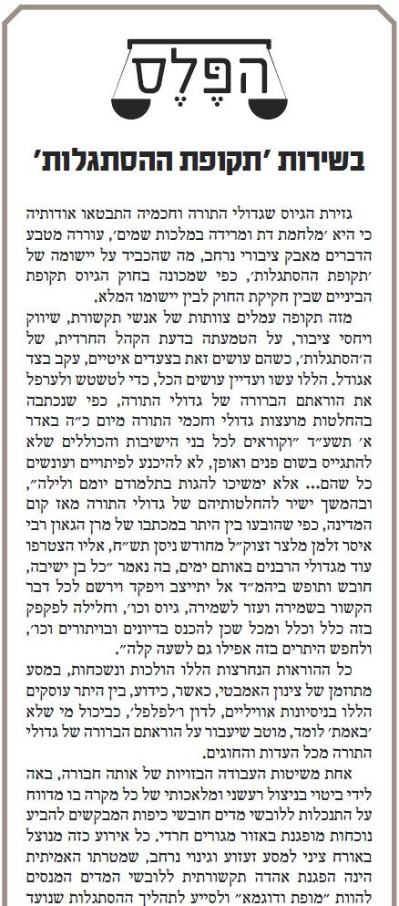 1. מאמר נוקב ב'הפלס' הבוקר..