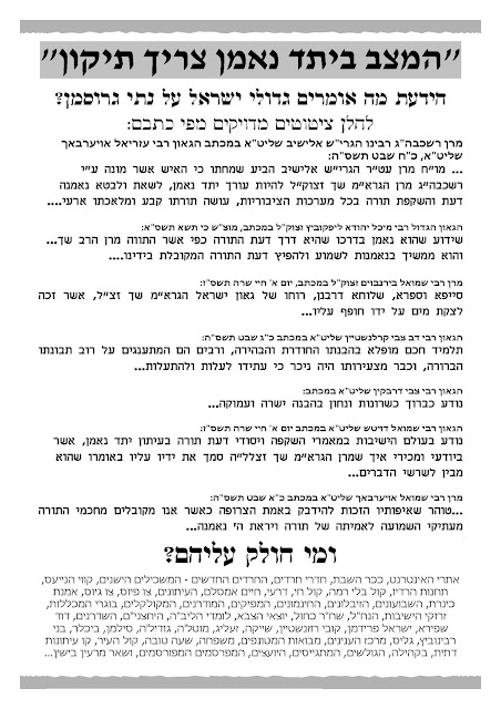 (למעט רב אחד שהביע תמיכה בעיתון רק לאחר שנתיים מהיווסדו, כך ששנתיים (!) פעל העיתון ללא גיבוי רבני כל שהוא!! אם על זה לא ראוי להיאמר שומו שמים באותיות על הסלע, אז מה על כן?)
