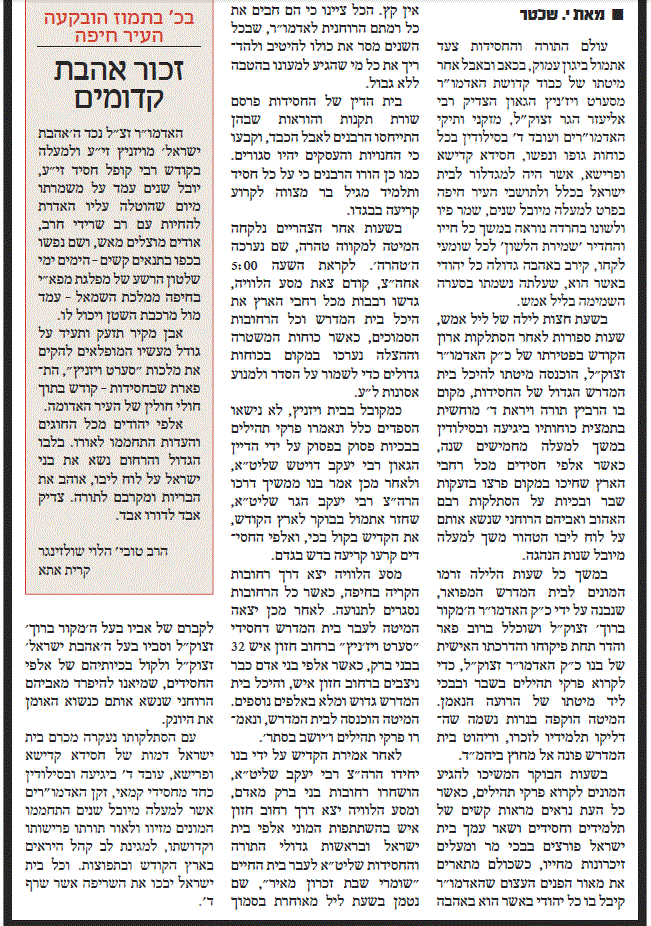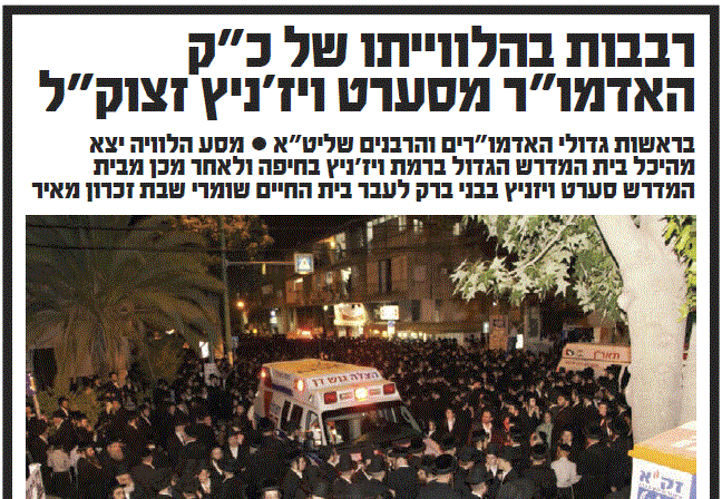 סיקור ב'הפלס' מהלווית כ''ק האדמו''ר מסערט ויז'ניץ זצוק''ל