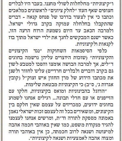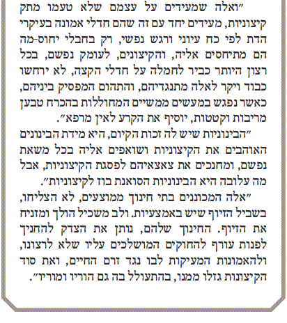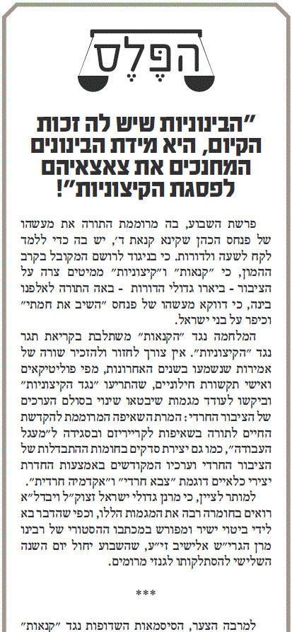 כרוך בשנאה יוקדת ל'קיצוניות' ואי נכונות להתפשר...והנה זה לעומת זה עשה האלקים, כאשר זכינו ועורכי הפלס