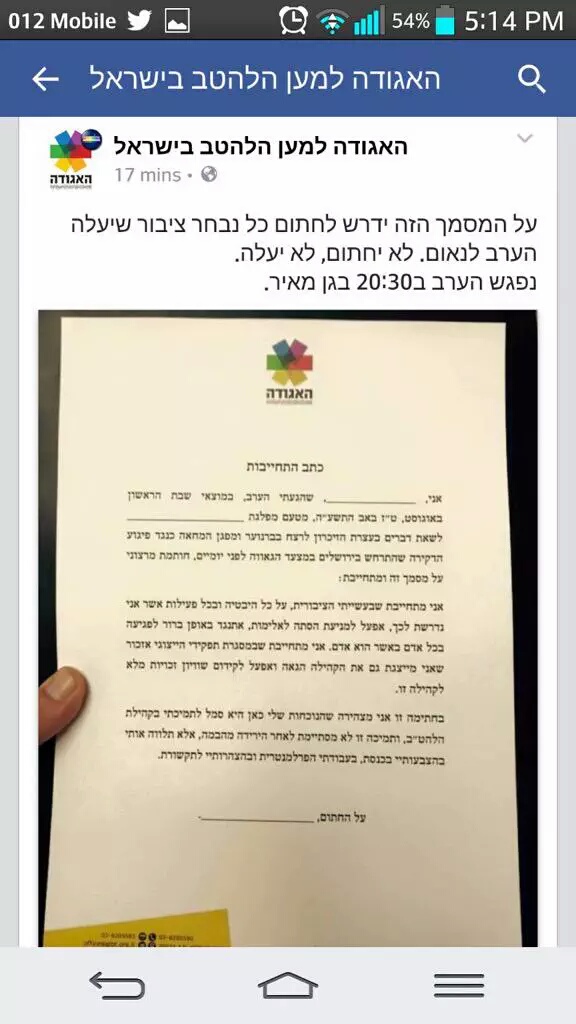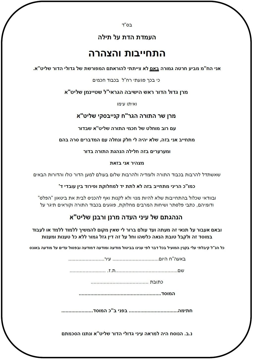 ואם מישהו בהנהלה חושב שהגזמתי שיגיד קודם מה הוא חושב על השוואת כתב נאמנות לגדולי ישראל לבין נאמנות ל''גאים''.