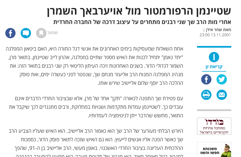 את מי מחבקת התקשורת החילונית, את הרב שטיינמן או את הרב אוירבך?