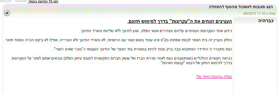 אך אם לתורת אמת יהיה איזו דרך להשלים את זה כי אחרי הכל מקבלים כסף מהמדינה ומקסימום שנה הבאה יפתחו עוד כיתה(לא בטוח שזה נוח ואפשרי עבורם)בתשב"ר הבעיה חמורה הרבה יותר, כי הם בנויים על כסף מסאטמר ולאור הרדיפות שהנהלת החיידר גיבתה ורדפה מלמדים וילדים בצורה אכזרית ביותר שמעתי שכבר בוטל להם איזה דינר והתורמים מסאטמר לא רואים אותם יותר בעין יפה, כעת מחמיר המצב ואין ספק למי יעדיפו אנשי סאטמר לתרום.