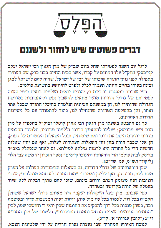 הפלס - הבטאון של עולם התורה