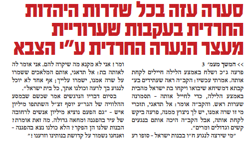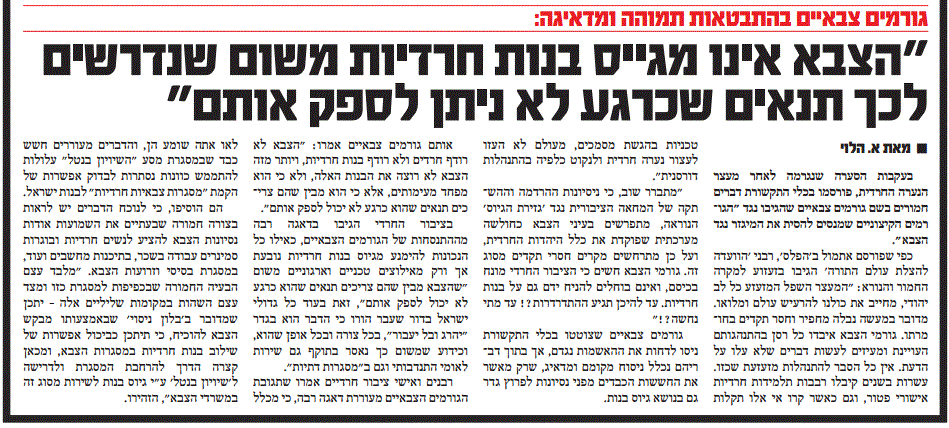 שימו לב לקטע שבסוף המאמר.. מעניין מה הכוונה בשורה החותמת את מאמר המערכת על גיוס בנות: