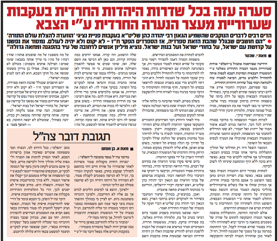 ''הפלס'' במאמר חריף ביותר על מפיצי תורת 'חולשת הדור' גם בנושאים כמו גיוס בנות