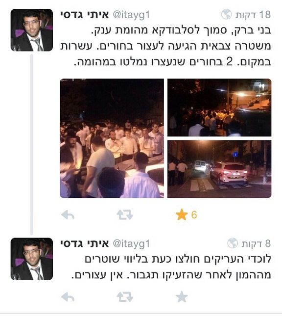 בני ברק: לוכדי העריקים עוררו מהומה באישון לילהבמהלך הלילה הגיעו 4 חיילי משטרה צבאית סמוך לסלבודקא בכדי לעצור עריקים לפי הרשימה שבידם. בתוך דקות הקיפו אותם עשרות בחורים ● שני עצורים שוחררו, והחיילים חולצו על ידי כח משטרה ● צפו בתיעוד