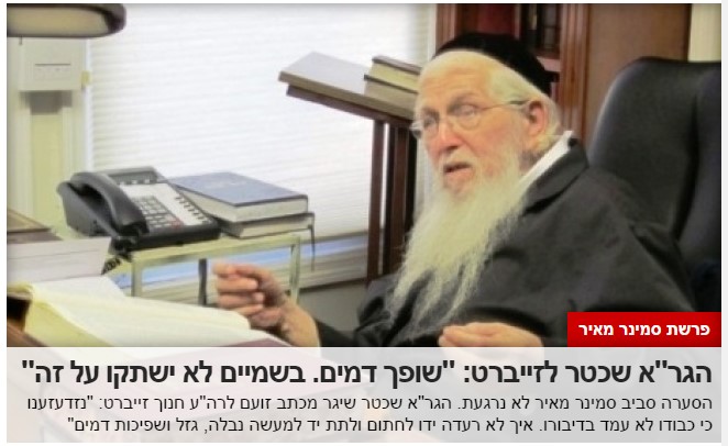 הגר"א שכטר לזייברט:"נותן יד לגזל ושפיכות דמים. סדום ועמורה"הסערה סביב סמינר מאיר לא נרגעת. הגר"א שכטר שיגר מכתב זועם לרה"ע חנוך זייברט: "נזדעזענו כי כבודו לא עמד בדיבורו. איך לא רעדה ידו לחתום ולתת יד למעשה נבלה, גזל ושפיכות דמים" (חרדים)