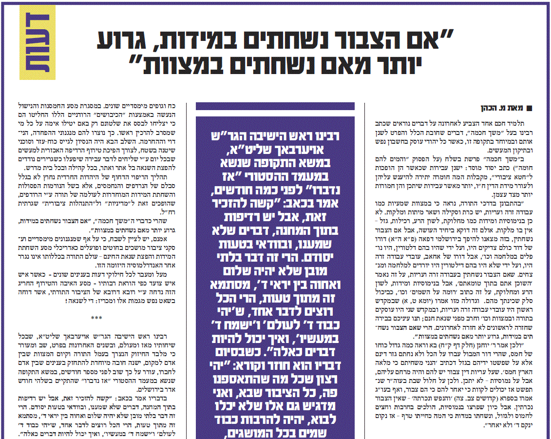 ''הפלס'' במאמר נוקב: ''השחתה ציבורית במדות - היא ההשחתה הגרועה מכל''
