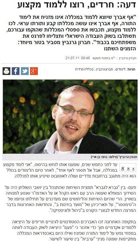 שנאת עם הארץ שמטיף ליציאה מהיכלי התורה ולהשתלבות באקדמיה |