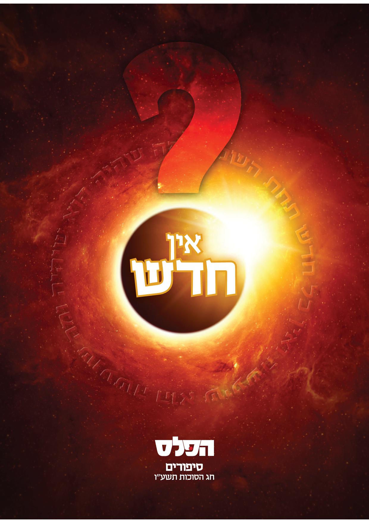 אחרון חביב ומבוקש, מוסף הסיפורים. מפתיע גם החג הזה הן בצורה והן בתוכן. 80 עמודי כרומו משובחים בעיצוב מושלם, פורמט אידיאלי ונוח לקריאה, צופנים בחובם את מיטב הסיפורת. הסיפורים, פרי קולמוסם של מבחר הסופרים בכלל ומבית 'הפלס' בפרט, מתייחדים הפעם באפקט חדשני ולא צפוי, כפי שמשקף היטב השם הלקוח ממגילת קהלת: אין חדש...
