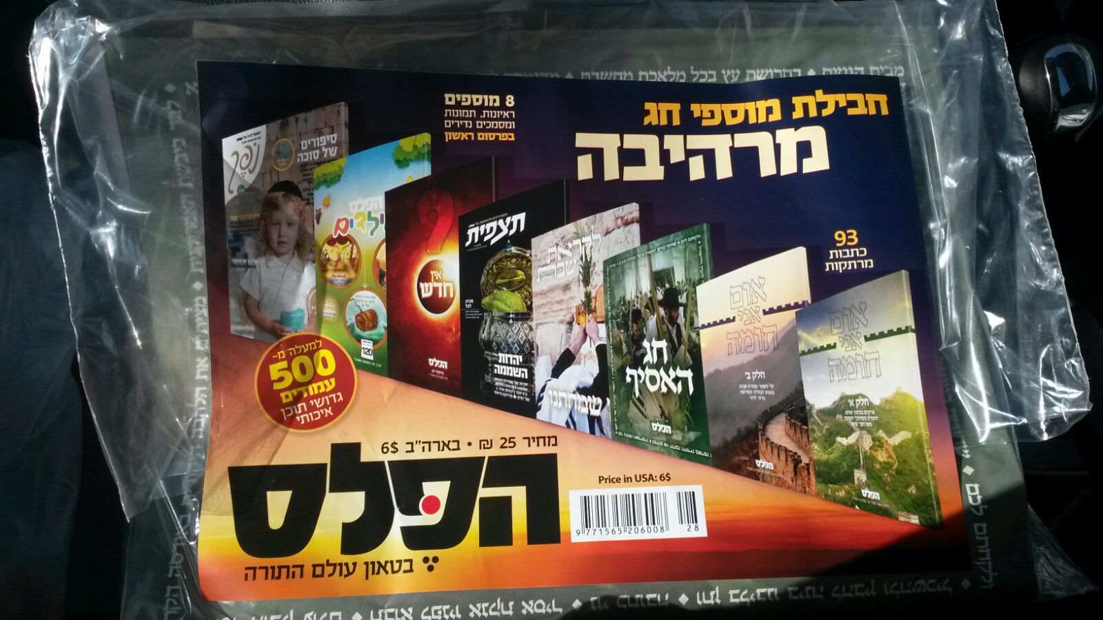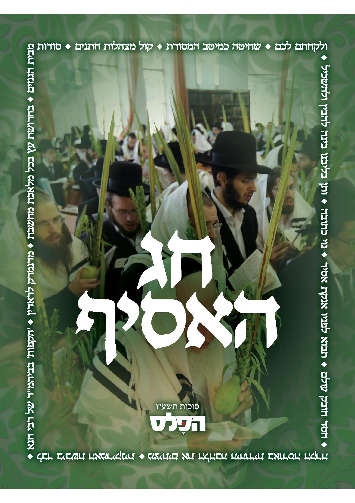 מוסף ''חג האסיף'' (80 עמ') עמוס במגוון כתבות בניחוח ''זמן שמחתנו'': סקירות וראיונות עם סוחרי ארבעת המינים, מתופף ירושלמי ותיק, אספני גנוזות, מעטר כתובות, מגלפים ואמנים. במרכז הגליון פרקי זכרונות נדירים מישיש בוגר ראדין וכן תחנות בחיי הגה''צ רבי חנא הלפרין זצוק''ל, והמוסף נסגר בסדרת ראיונות של הרב ישעיהו ויין עם אישי מפתח בעולם החסד שביבשת האמריקאית.