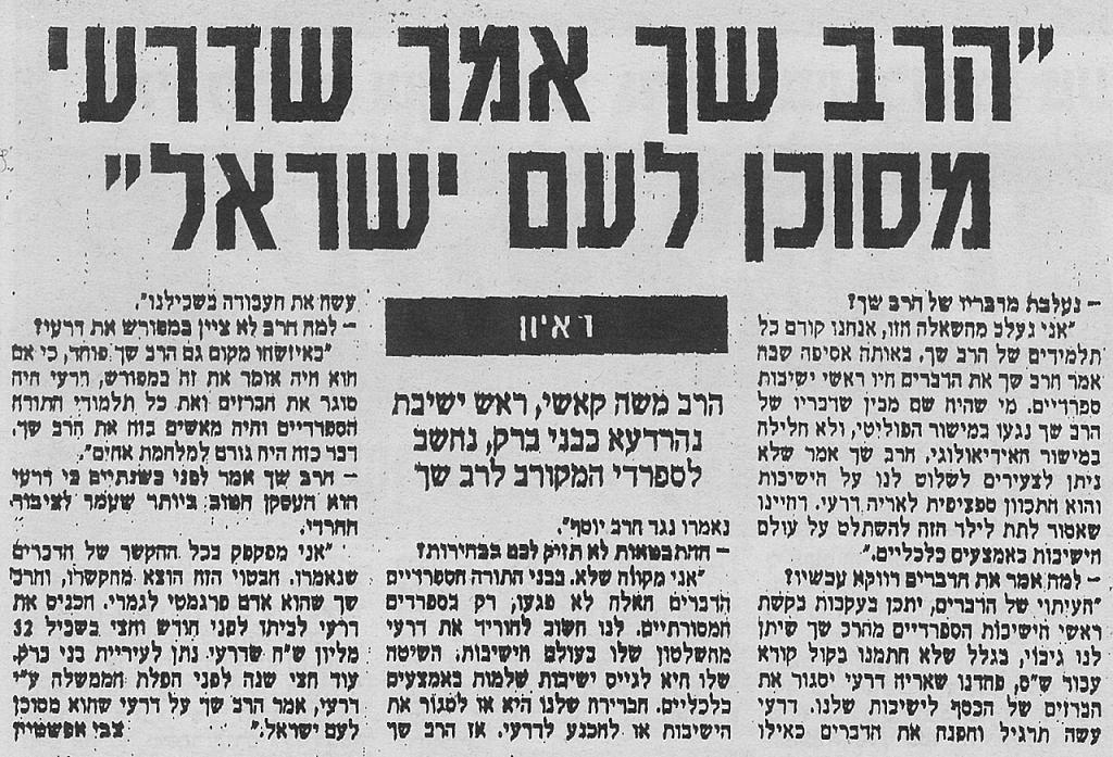 5. כמה שהרב שך צדק 'דרעי מסוכן לעם ישראל'!