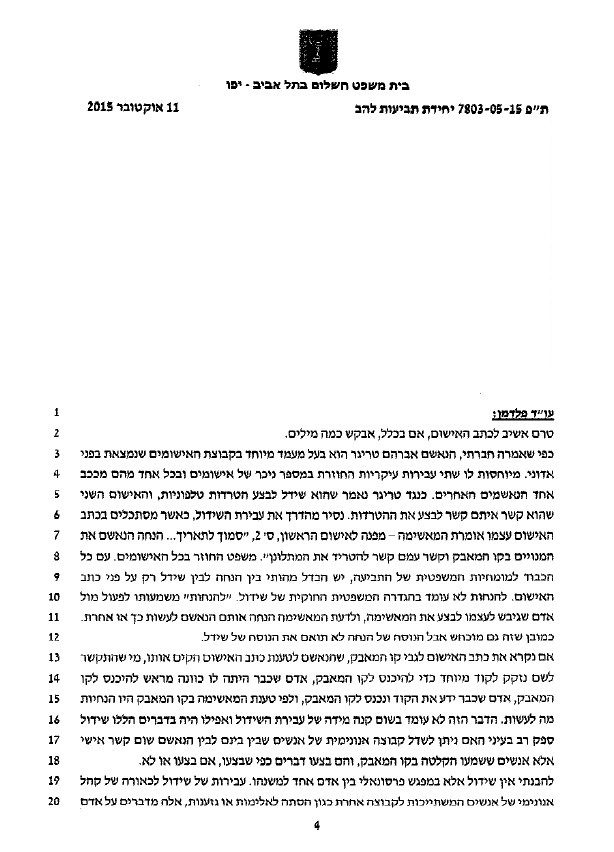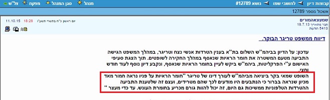 בעידן של היום - הכל חשוף. כולל דוחות בית המשפט. ע''ע טרגר הדעה והדיבור 12.10.15 23:57 14