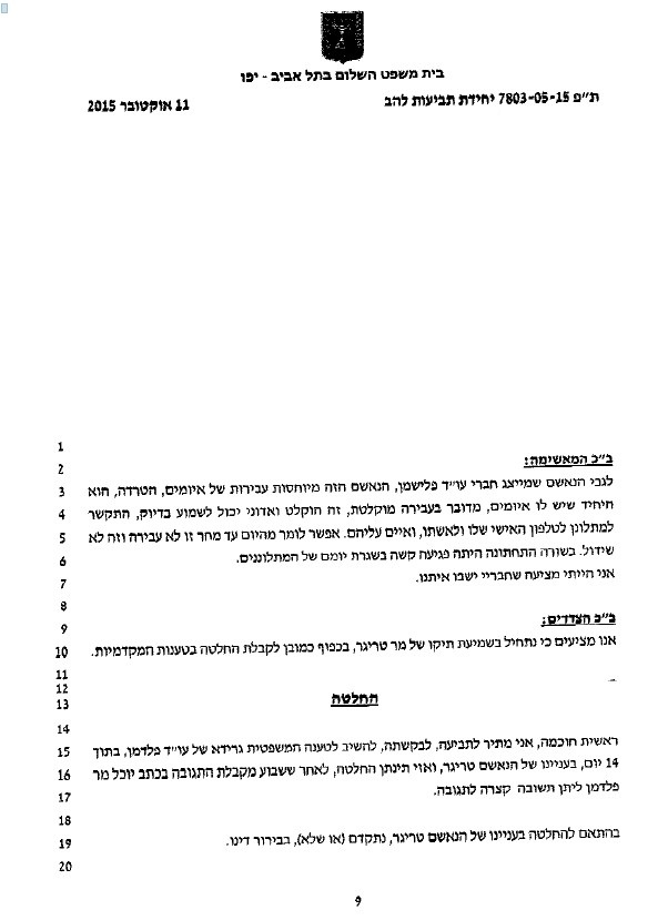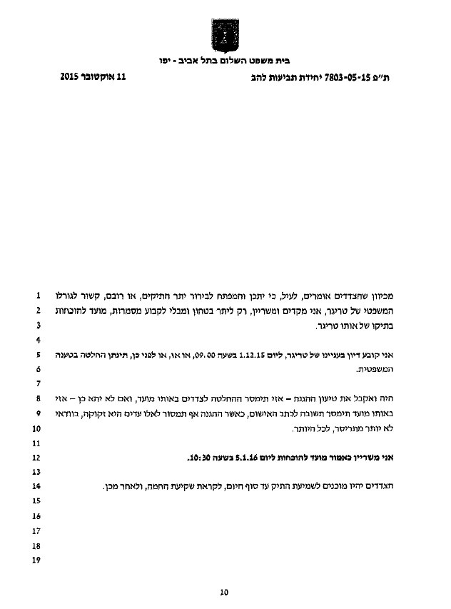 חשיפה: הפרוטוקול המלא מהדיון אמש במשפט ''טריגר''. צפו: