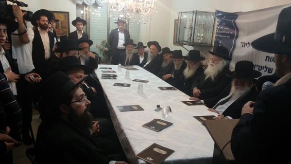 הערב במעונו של הגרש''י בורנשטיין גדולי ראשי הישיבות בראשות הגרב''ד פוברסקי והגרמ''ה הירש בכינוס למען חיזוק כתיבת חידו''ת.