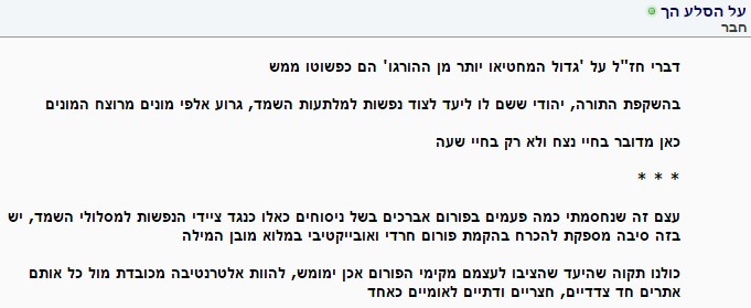 לבעלי האתר בשל התנגדותו לגזירות השמדוסתם כך כבהערת אגב, מעניין איך אתם מרגישים עם עצמכם