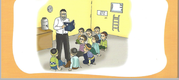 בשולי הדפים, מופיעים איורים של ילדים 'חרדים' לבושי