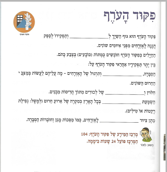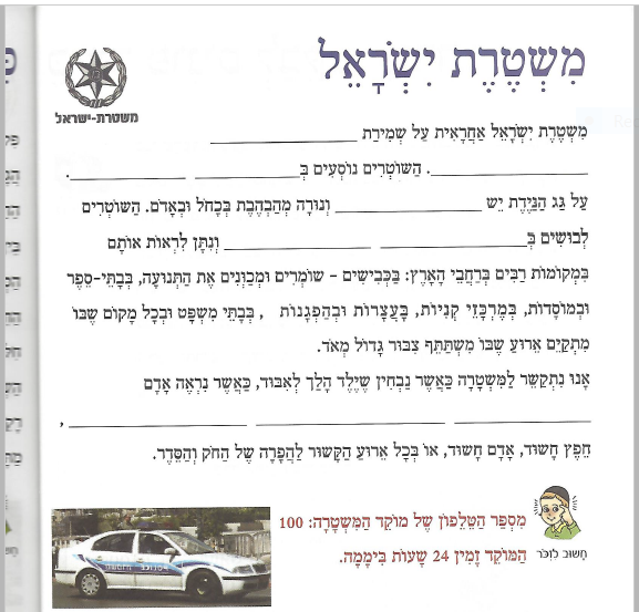 כשבדפי העבודה מחדירים להם כי חיילי צה''ל והשוטרים