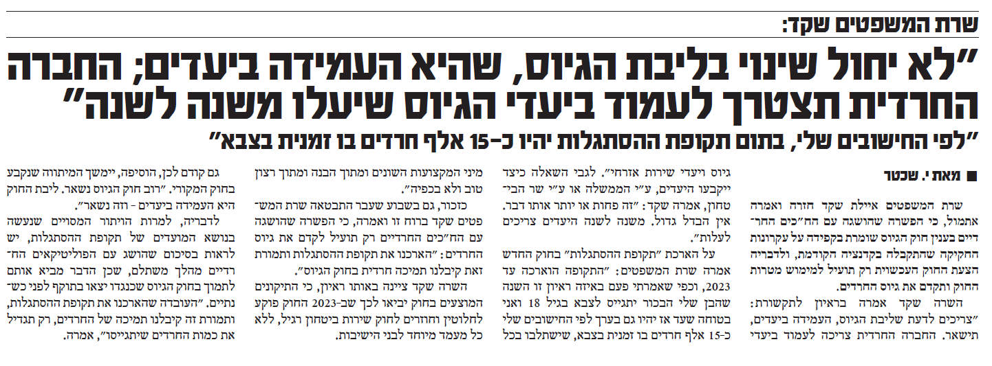 רבנית או חרדית הזכות לחתום ולהצביע על חוק שמד דחוי ל-7 שנים