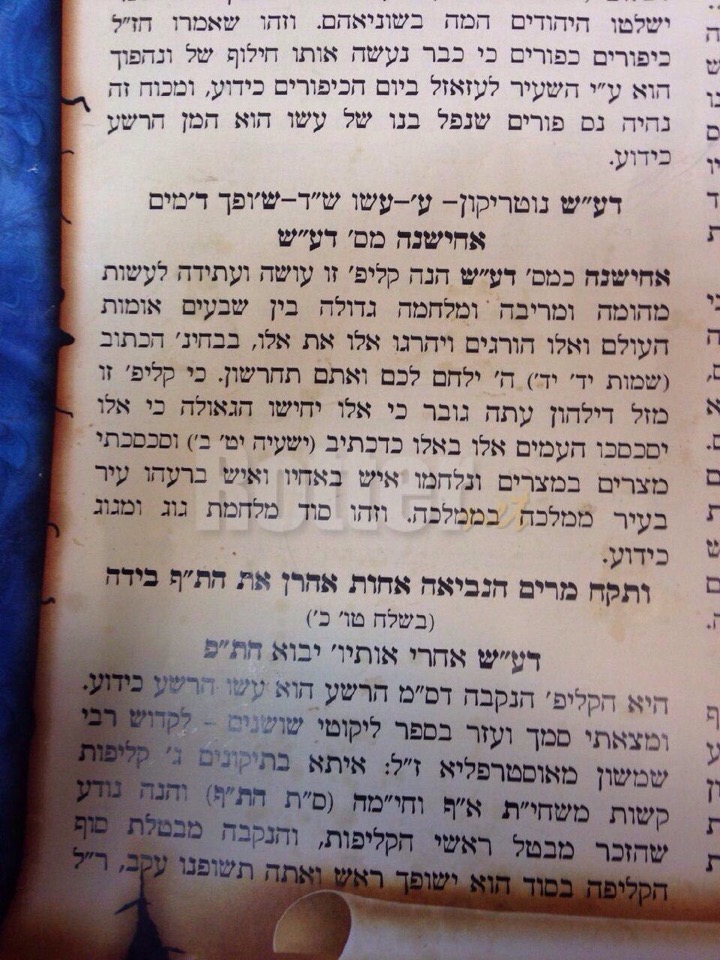 בקבוצות הוואסטאפ פורסם קטע המדבר אודות ארגון דאעש, אשר הינו ''קליפה שעתידה לעשות מהומה ומריבה ומלחמה גדולה בין שבעים אומות העולם ואלו יהרגו את אלו ואלו יהרגו את אלו''.