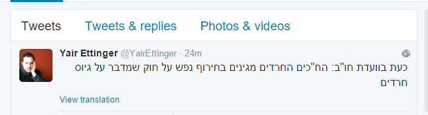 יאיר אטינגר: כעת הח''כים החרדים מגינים בחירוף נפש בוועדת חו''ב על..........