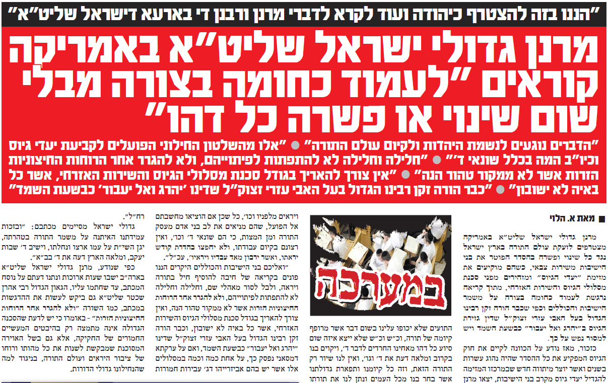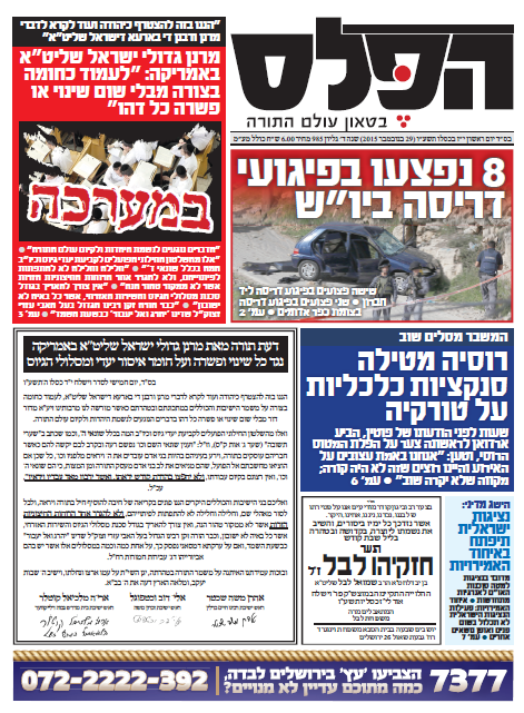 מאבק הפלג הירושלמי בתיקון חוק הגיוס: שלושה ראשי ישיבות בארה''ב מפרסמים הבוקר (ראשון) מכתב בעיתון ''הפלס'' בו הם מביעים התנגדות לתיקון חוק הגיוס.