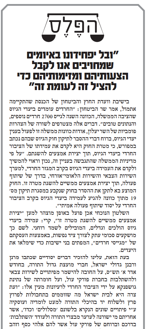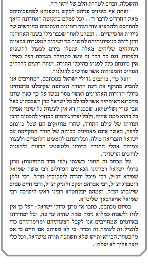 מאמר חשוב של מרן הגרי''א ספקטור זצוק''לביתד של היום(שלישי)