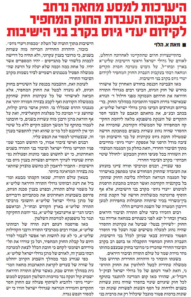 ''הפלס'': היערכות לקראת סדרת מחאות אדירות כנגד חוק השמד המחפיר