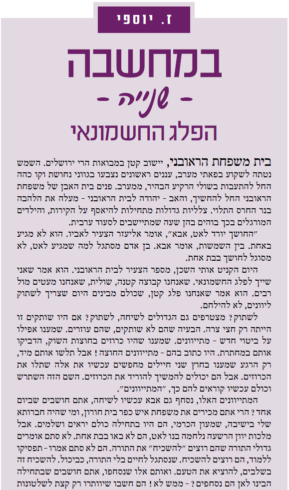 1. הנה עוד אחד שהציג את עצמו השבוע כמבין ב'חשמונאים'