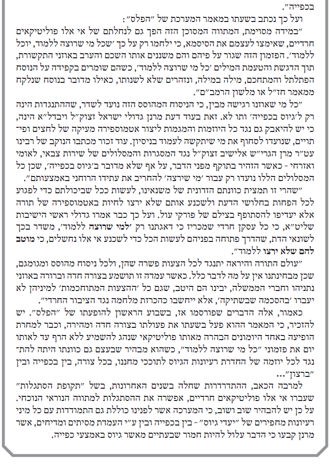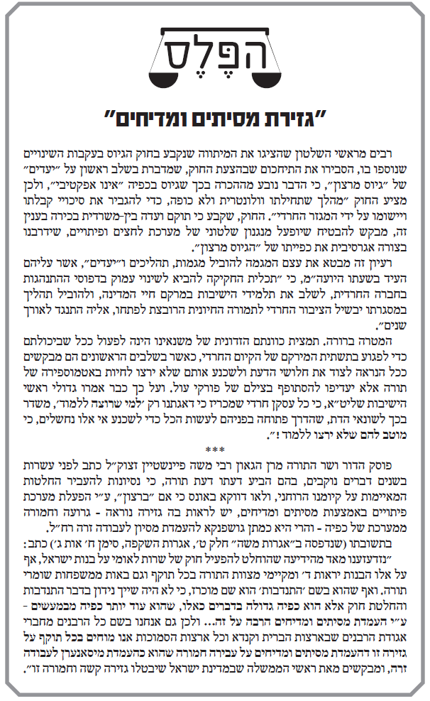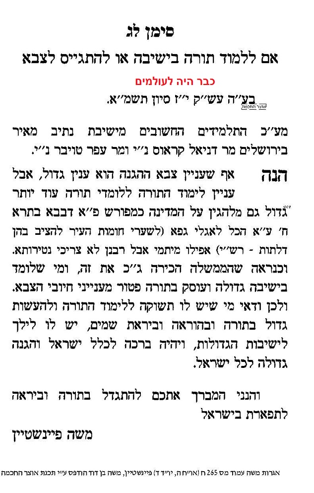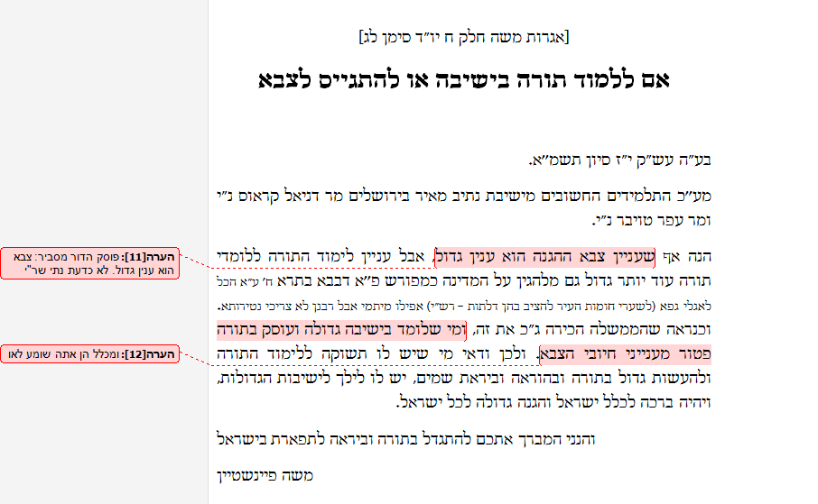 כמובן, שאת התשובה של ר' משה פיינשטיין בענין שירות לאומי