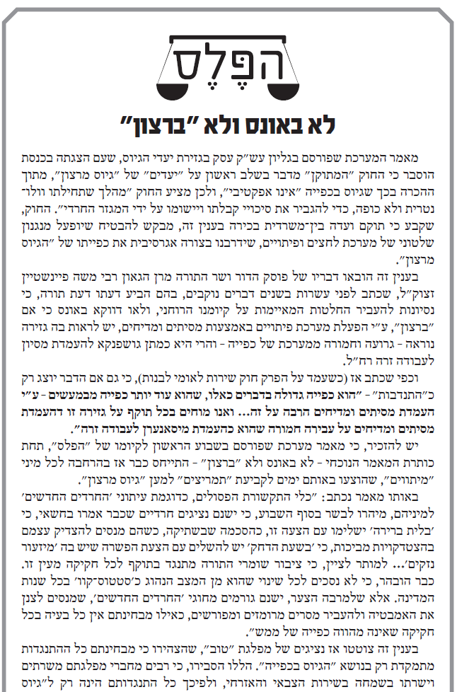 הדברים היו ברורים לכל בר דעת, עד שרבים חשו שכריכת הדיחוי