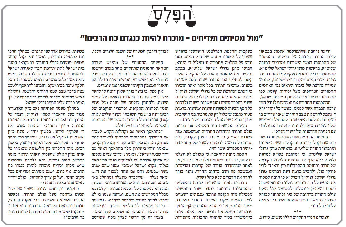 ''הפלס'' במאמר לקראת עצרת הרבבות: מול גזירת מסיתים ומדיחים - יש להעמיד כוח הרבים