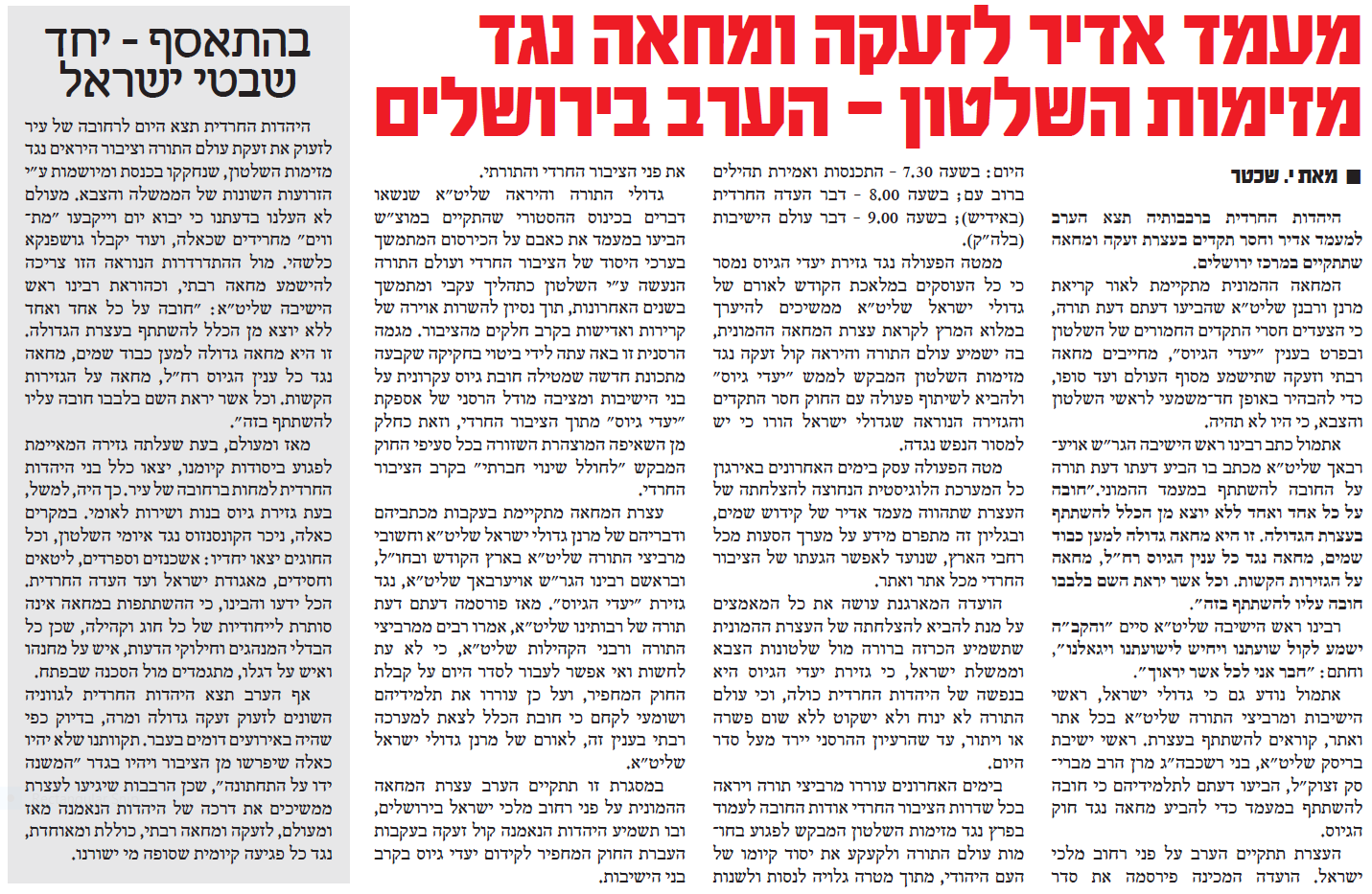 ''הפלס'': הערב במוצאי הצום - עצרת רבבות במחאה על פריצת חומת היהדות בחוק הגיוס